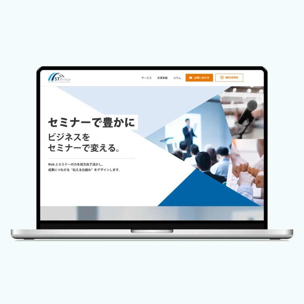 ◼︎デザイン説明:BtoBサービスに求められる“信頼感”を軸に、初見でも迷わない読みやすいデザインにしています。お問い合わせフォームが最重要導線のため、青系サイトの中でも視認性の高い“オレンジ”をアクセントカラーに設定。ユーザーの目線と行動を自然に誘導するUIを設計しています。